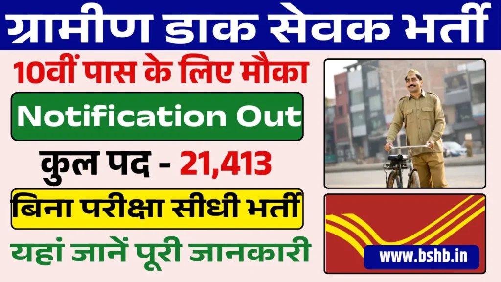 The submit ग्रामीण डाक सेवक भर्ती 2025: 10वीं पास के लिए डाक विभाग में बंपर 21,413 वेकेंसी, जल्दी करें आवेदन appeared first on BSHB.IN.