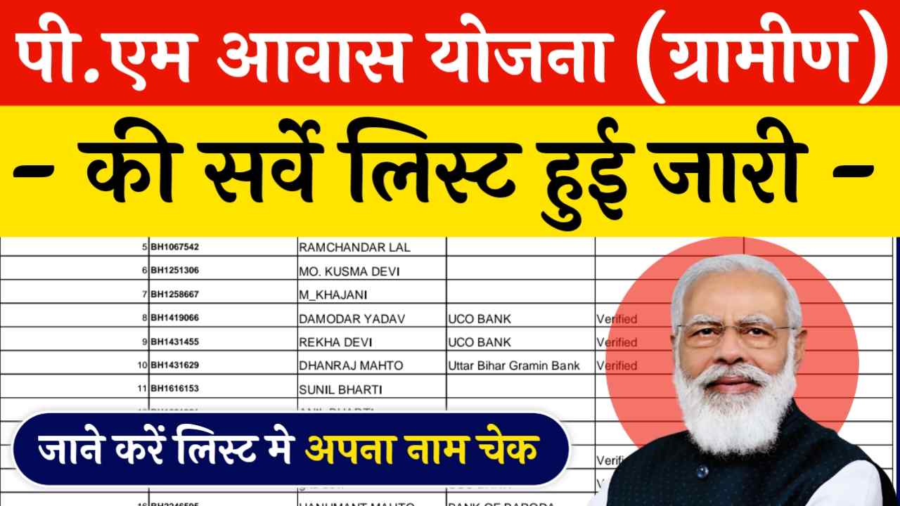 अपने इस आर्टिकल मे हम, आप सभी बेघर परिवारो सहित पाठकों का हार्दिक स्वागत करना चाहते है और आपको बताना चाहते है कि, प्रधानमंत्री आवास योजना ( ग्रामीण ) सर्वे 2024 के लिस्ट को जारी कर दिाय गया है जिसे आप सभी ना केवल अपना नाम चेक कर सकें बल्कि लिस्ट को डाउनलोड कर सकें इसके लिए हम, आपको विस्तार से PM Awas List 2025 के बारे मे बतायेगें जिसके लिए आपको धैर्यपूर्वक इस आर्टिकल को पढ़ना होगा ताकि आप पूरी – पूरी जानकारी प्राप्त कर सकें।