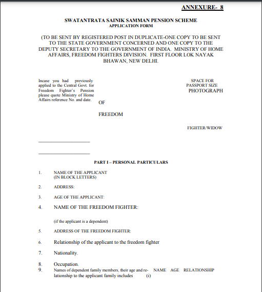 Swatantrata Sainik Samman Pension Scheme |