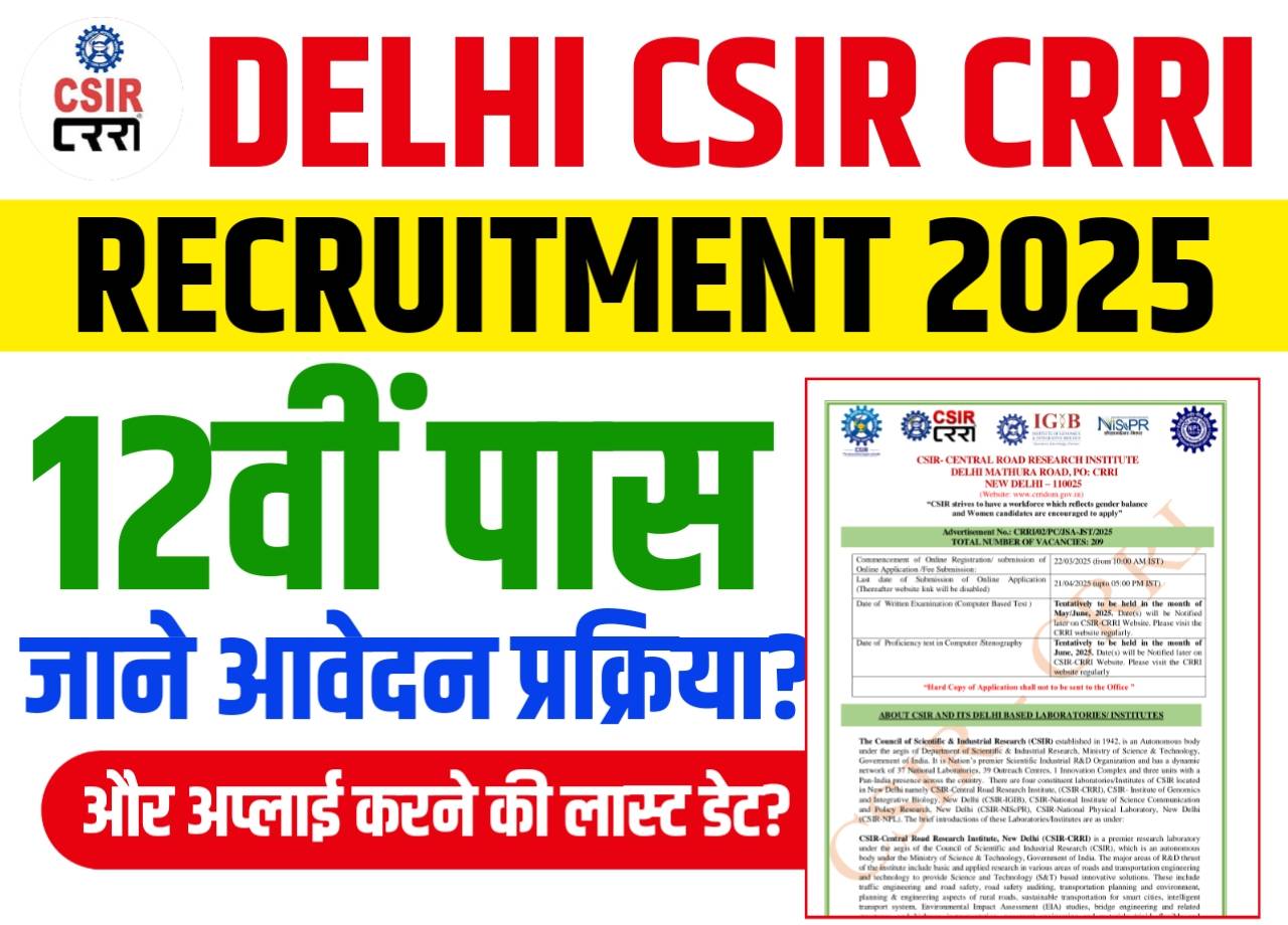 Delhi CSIR CRRI Bharti 2025: यदि आप भी सिर्फ 12वीं पास है और CSIR- CENTRAL ROAD RESEARCH INSTITUTE के तहत Junior Secretariat Assistant & Junior Stenographer के पदोें पर नौकरी प्राप्त करना चाहते है तो हमारा यह आर्टिकल केवल आपके लिए है जिसमें हम आपको विस्तार से जारी हुई नई भर्ती अर्थात् Delhi CSIR CRRI Bharti 2025 के बारे में बतायेगे जिसके लिए आपको अन्त तक हमारे साथ बने रहना होगा ताकि आप पूरी – पूरी जानकारी प्राप्त कर सकें।