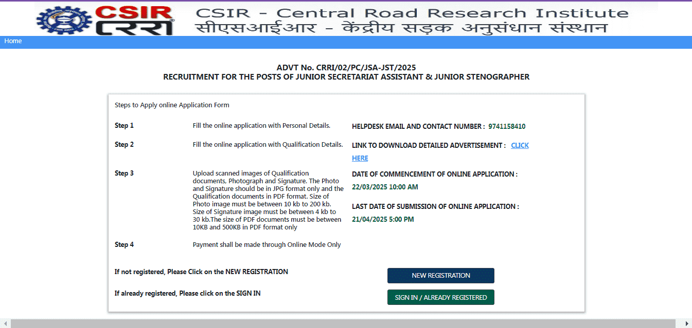 Methods to Apply On-line in Delhi CSIR CRRI Bharti 2025?
