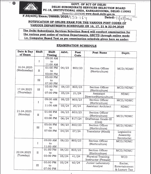 DSSSB April 2025 Examination Schedule
