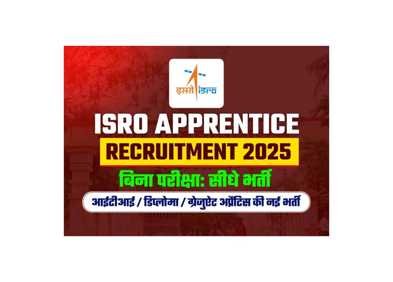 ISRO ने निकाली बिना परीक्षा आईटीआई / डिप्लोमा / ग्रेजुऐट अप्रैंटिस की नई भर्ती, जाने क्या है पूरी भर्ती, आवेदन प्रक्रिया और अप्लाई करने की लास्ट डेट – ISRO Apprentice Recruitment 2025?