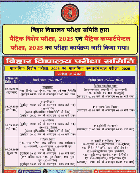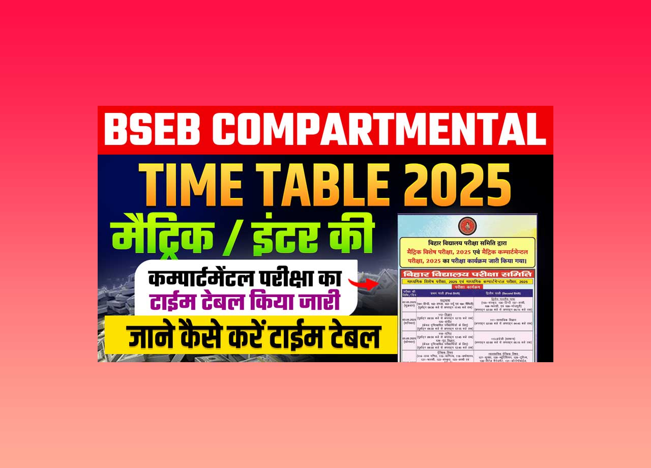 बिहार बोर्ड ने मैट्रिक / इंटर की कम्पार्टमेंटल परीक्षा का टाईम टेबल किया जारी, जाने कैसे करें टाईम टेबल डाउनलोड और क्या है पूरी प्रक्रिया – BSEB Compartmental Time Desk 2025?