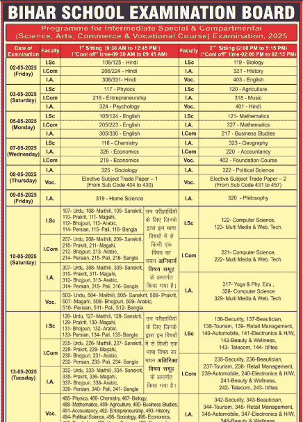 How To Examine & Obtain twelfth Compartmental Time Desk PDF – BSEB Compartmental Time Desk 2025?
