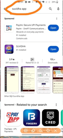 - यहां पर आने के बाद आपको Suvidha App को टाईप करना होगा जिसके बाद आपको रिजल्ट मिल जायेगे जो कि, इस प्रकार के होंगे –