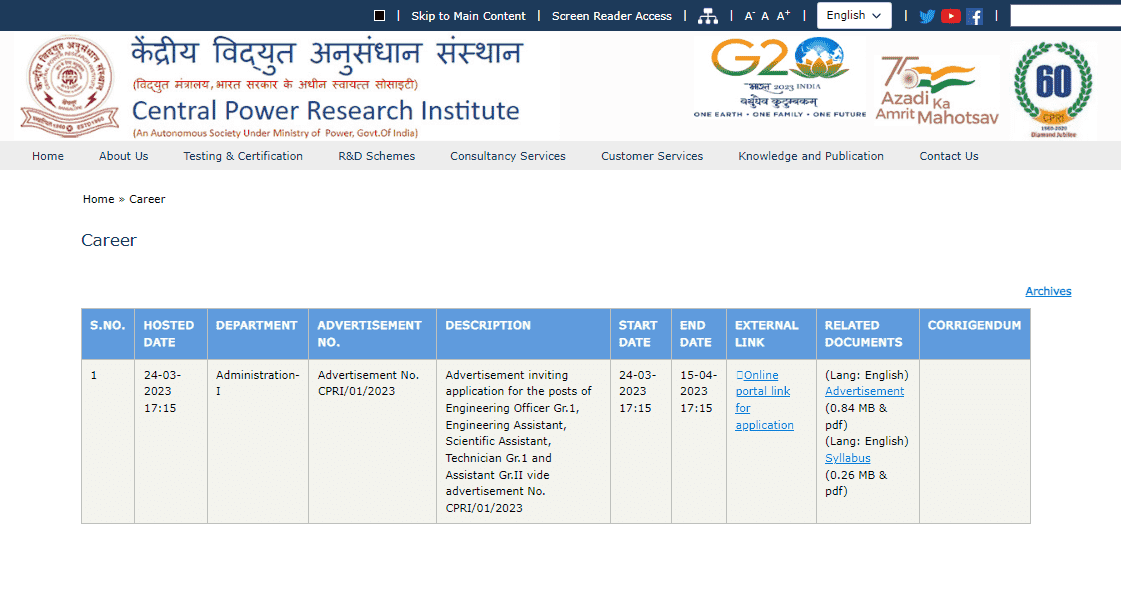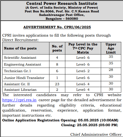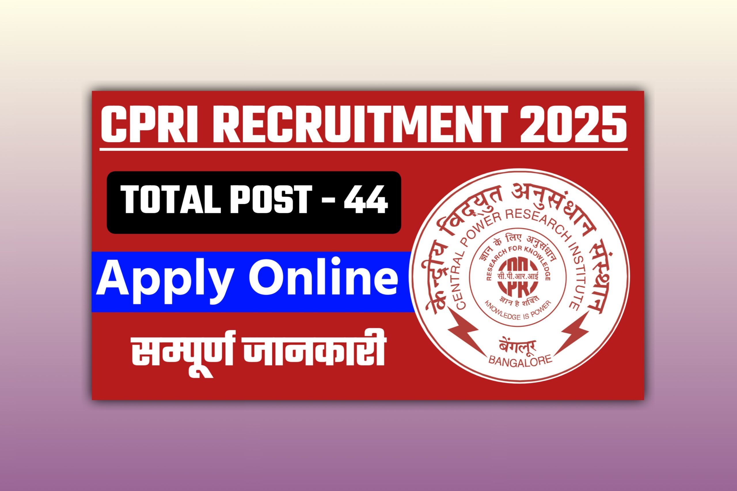 केंद्रीय विघुत अनुसंधान संस्थान ( CPRI ) की नई भर्ती हुई जारी, जाने क्या है पूरी भर्ती, आवेदन प्रक्रिया और अप्लाई करने की लास्ट डेट – CPRI Recruitment 2025?