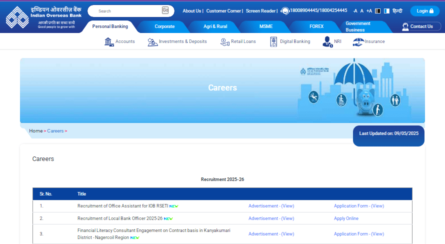 प्रत्येक अभ्यर्थी जो कि, Indian Abroad Financial institution LBO Recruitment 2025 मे अप्लाई करना चाहते है वे 12 मई, 2025 से लेकर आगामी 31 मई, 2025 तक ऑनलाइन अप्लाई कर सकते है।