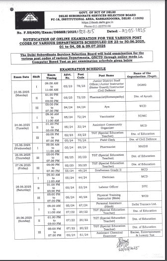 Detailed Info of DSSSB June Examination Calendar 2025? |