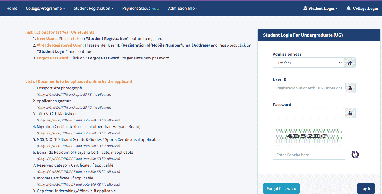 Step 2 – Login & Apply On-line For Haryana UG Admission 2025
