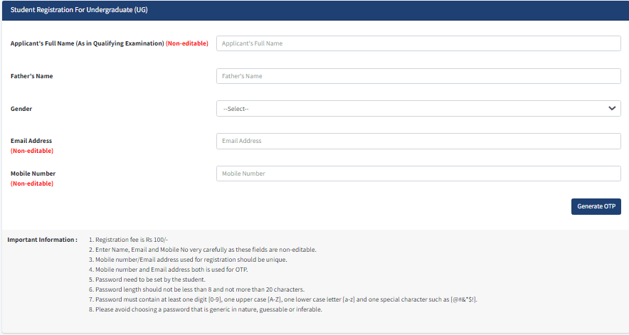 - अब आपको ध्यानपूर्वक इस स्टूडेंट रजिस्ट्रैशन फॉर्म को भरना होगा और