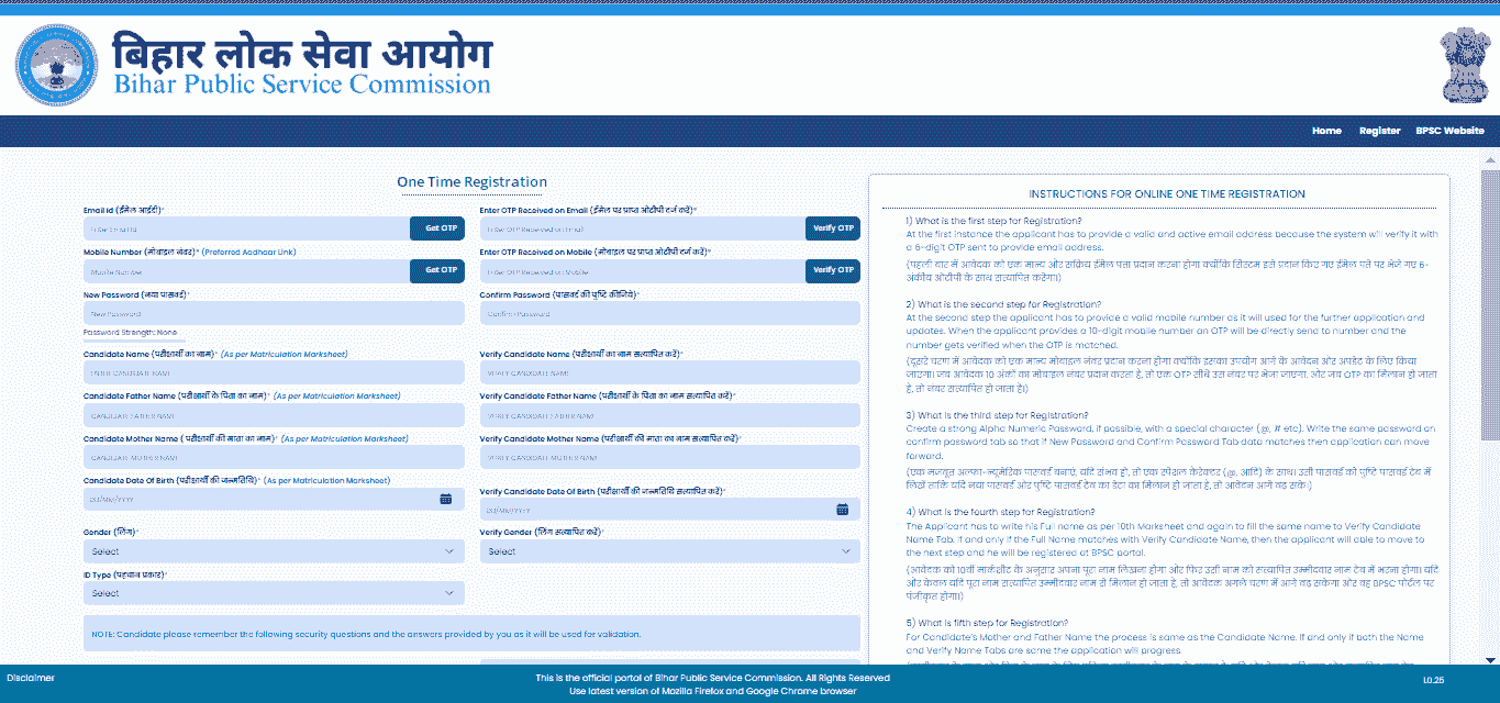 Step 1 – Full Your OTR First Earlier than On-line Apply In BPSC MVI Emptiness 2025