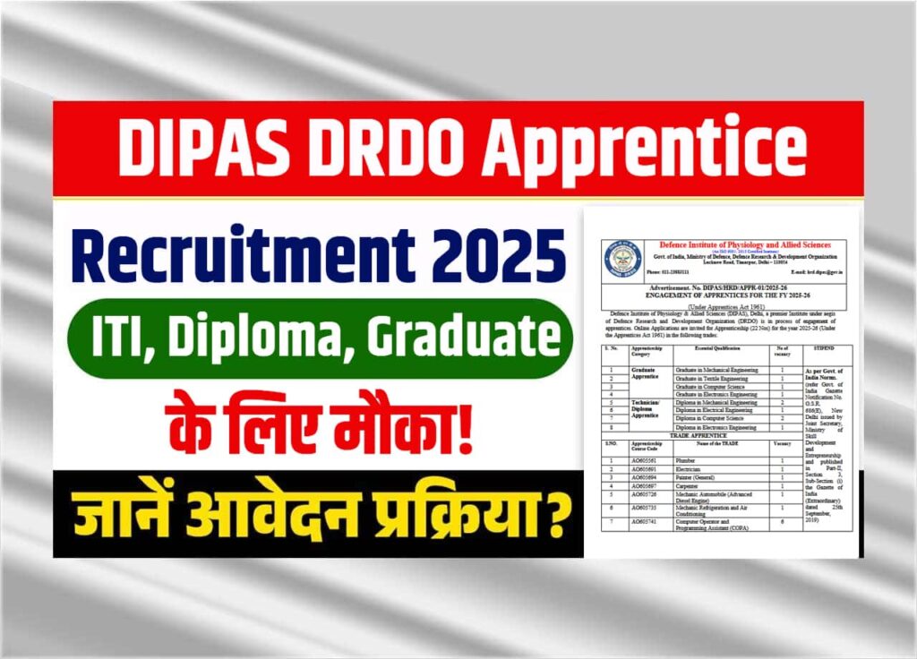 DIPAS DRDO मे आई आईटीआई / डिप्लोमा / ग्रेजुऐट अप्रैंटिस की नई भर्ती, जाने क्या है पूरी भर्ती, आवेदन प्रक्रिया और अप्लाई करने की लास्ट डेट – DIPAS DRDO Apprentice Recruitment 2025?