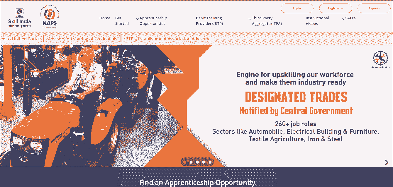 - DIPAS DRDO Apprentice Recruitment 2025 के तहत ITI Trades के पदों पर नौकरी पाने हेतु ऑनलाइन आवेदन करने के लिए सबसे पहले आपको NAPS के Official Web site के होम – पेज पर आना होगा जो कि, इस प्रकार का होगा –