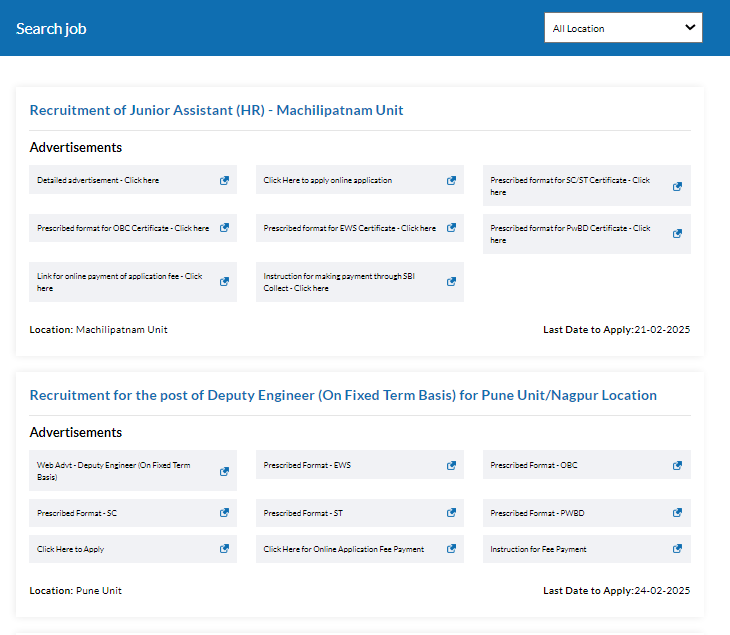 - अब यहां पर आपको Recruitment for the submit of Deputy Engineer (On Mounted Time period Foundation) for Pune Unit/Nagpur Location के नीचे ही Web site to Apply का विकल्प मिलेगा जिस पर आपको क्लिक करना होगा,