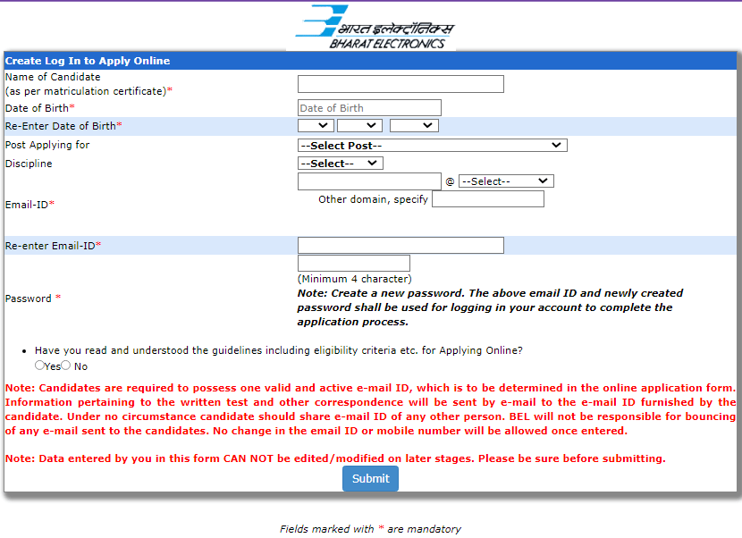 Submit Clever Emptiness Particulars of BEL Deputy Engineer Recruitment 2025?