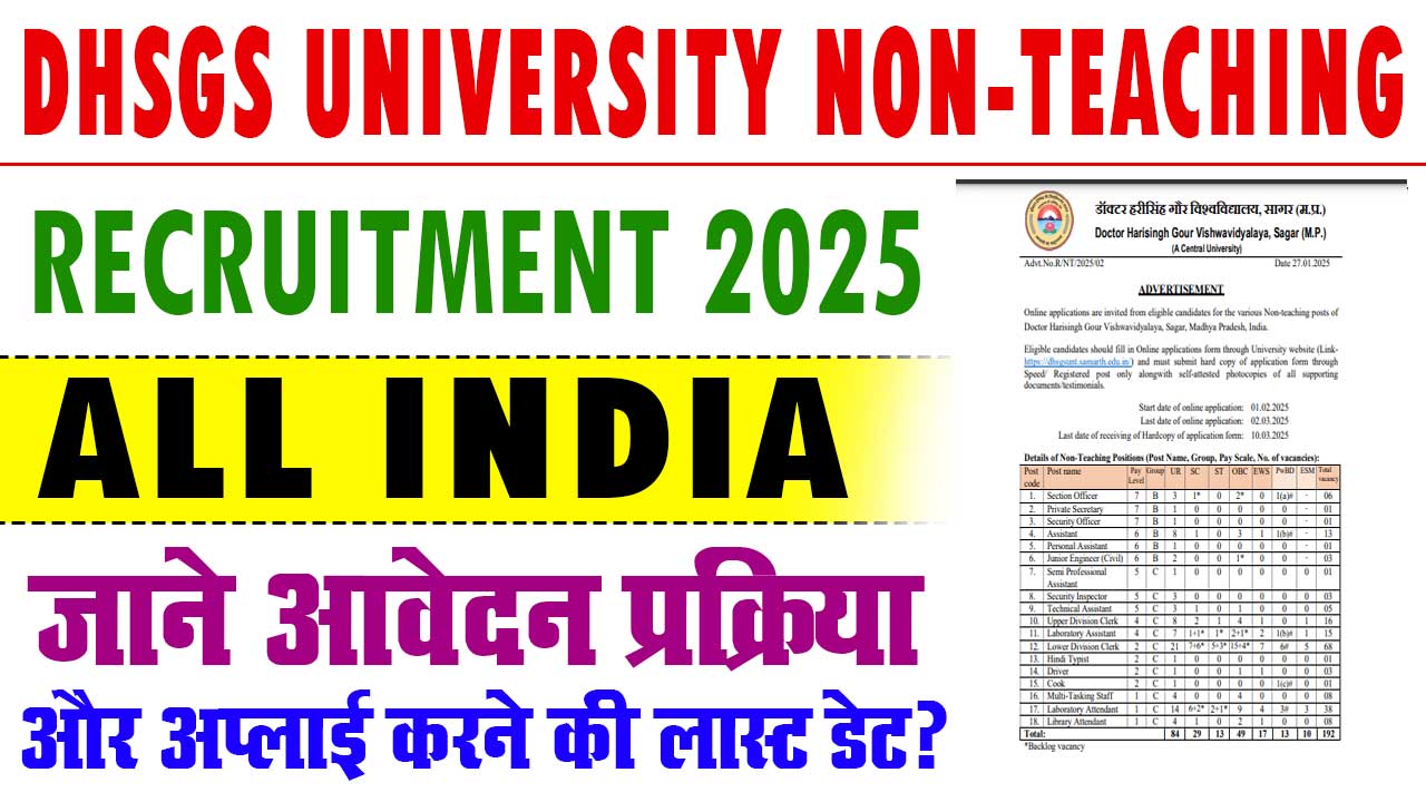 अपने इस आर्टिकल मे हम, आप सभी युवाओं सहित आवेदको का हार्दिक स्वागत करना चाहते है जो कि, डॉक्टर, हरीसिंह गौर विश्वविद्यालय, सागर ( म.प्र ) मे गैर शैक्षणिक पदोें / नॉन टीचिंग पोस्ट्स पर नौकरी प्राप्त करना चाहते है और अपना करियर स्टार्ट करना चाहते है उन्हें हम, इस आर्टिकल की मदद से विस्तार से DHSGS College Non-Educating Recruitment 2025 के बारे मे बतायेगें जिसके लिए आपको धैर्यपूर्वक इस आर्टिकल को पढ़ना होगा ताकि आप पूरी – पूरी जानकारी प्राप्त कर सकें।
