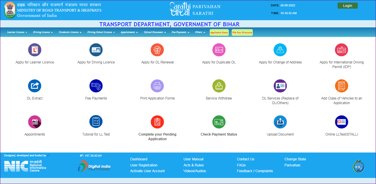 - Driving Licence Cell Quantity Replace के लिए सबसे पहले आपको इसकी Official Web site के होम – पेज पर आना होगा जो कि, इस प्रकार का होगा –