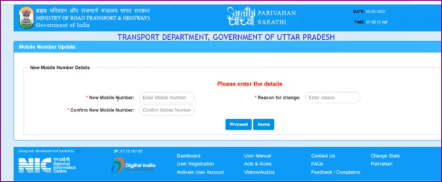- अब आपको यहां पर अपने नये मोबाइल नंबर को दर्ज करना होगा और सबमिट कर देना होगा जिसके कुछ ही दिनो के बाद आपके ड्राईविंग लाईसेंस में, आपके नये मोबाइल नंबर को अपडेट कर दिया जायेगा आदि।