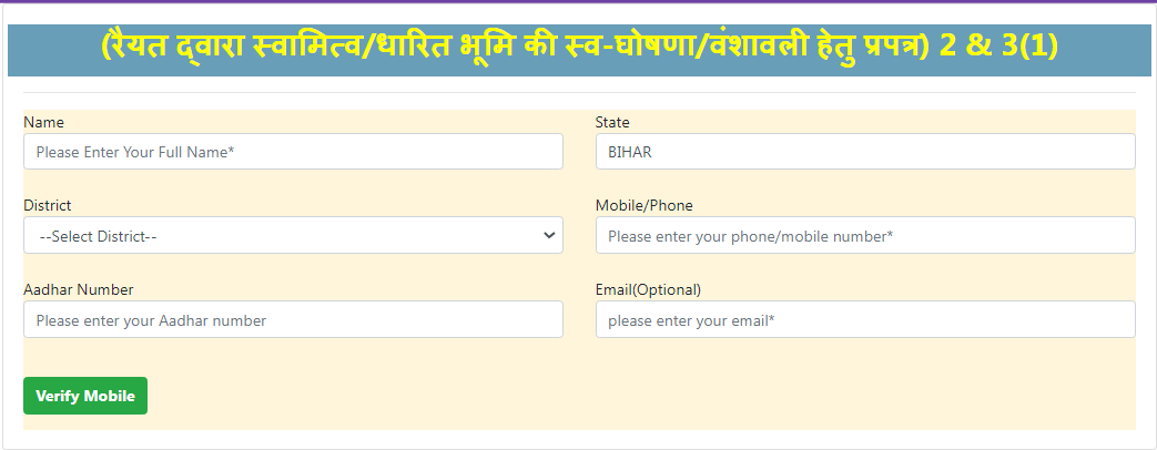 Bihar Jamin Survey On-line Kind 2025 – Overview