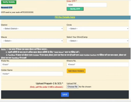 सर्वे टीम द्धारा भूमि मालिको से खतियान, स्व – घोषणा पत्र और वंशावली लेगी |