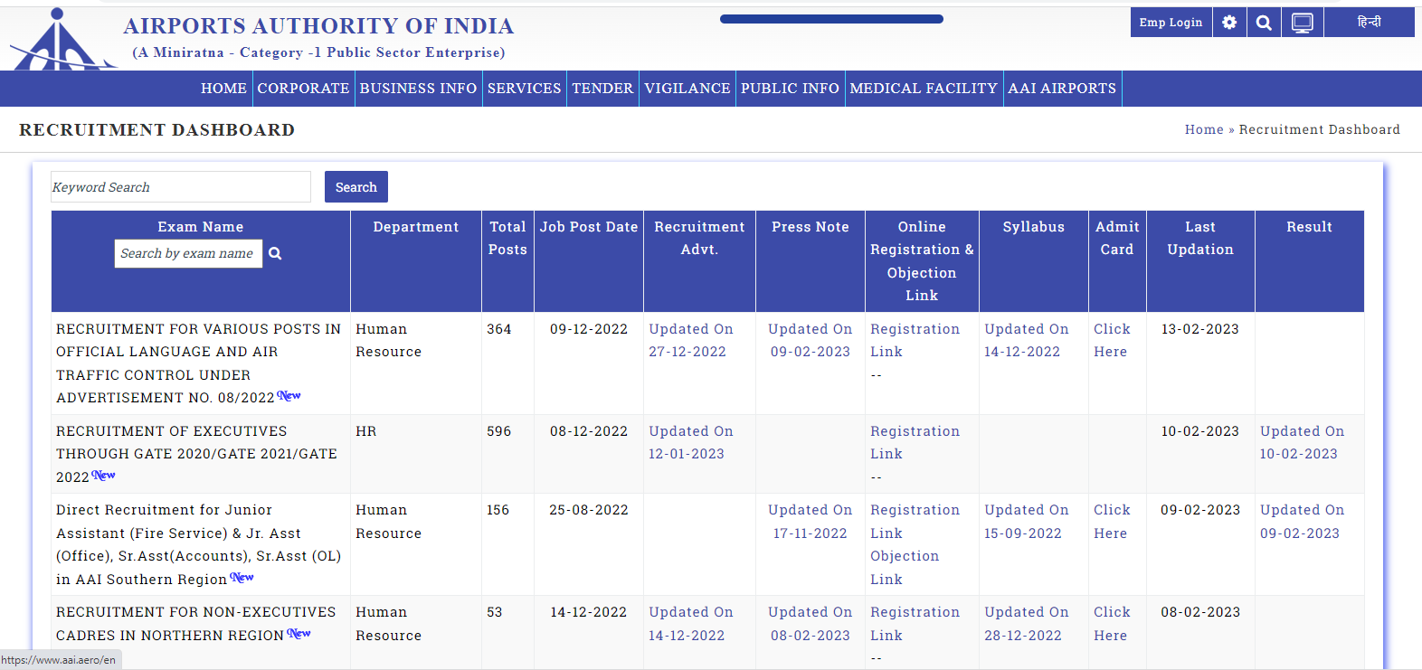 • AAI Junior Government Recruitment 2025 मे ऑनलाइन अप्लाई करने के लिए सबसे पहले आपको इसके Official Recruitment Web page पर आना होगा जो कि, इस प्रकार का होगा –