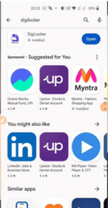 - यहां पर आपको सर्च बॉक्स मे DigiLocker App को टाईप करना होगा औऱ सर्च करना होगा,