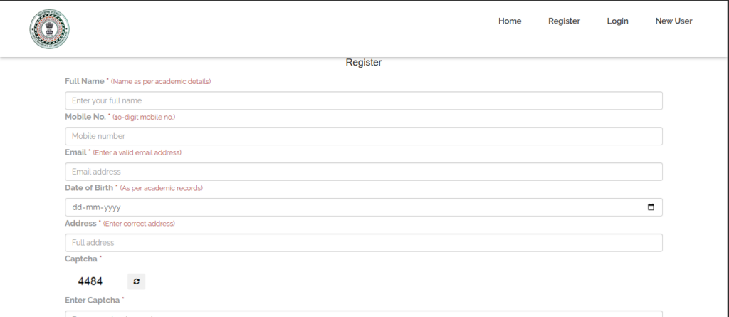 Step 3: अब Register टैब पर क्लिक करके पोर्टल पर अपना नया रजिस्ट्रेशन करें।