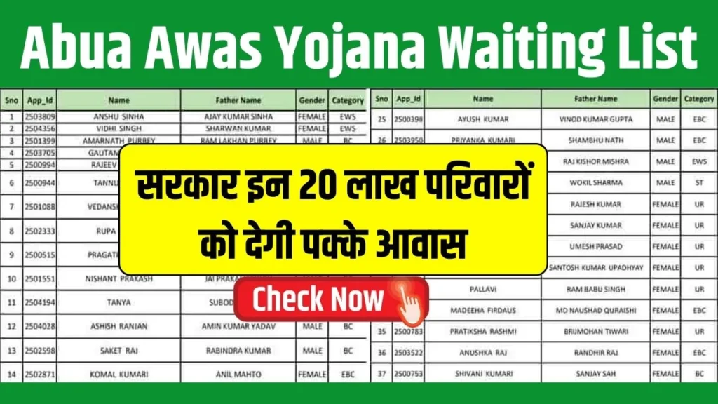 The submit Abua Awas Yojana Ready Checklist : सरकार 20 लाख परिवारों को पक्के आवास देगी, देंखे वेटिंग लिस्ट में अपना नाम appeared first on BSHB.IN.