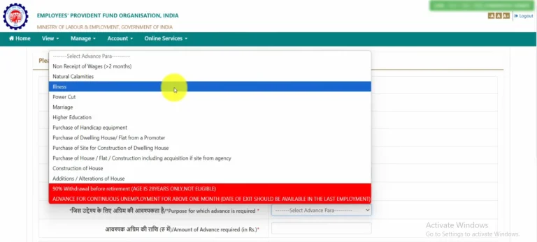 बीमारी के कारण PF Advance Withdrawal के नियम