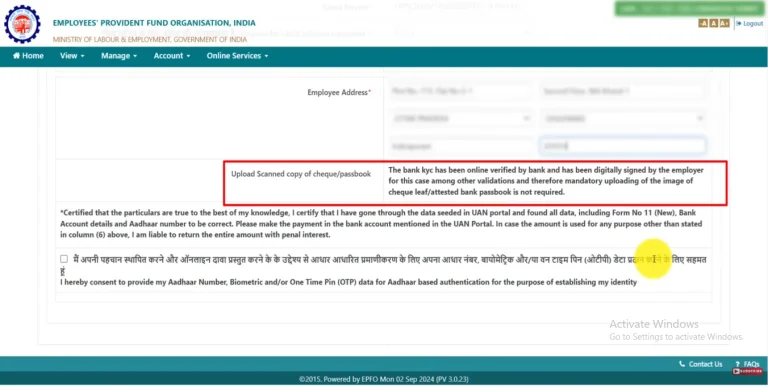 अगर बैंक डिटेल्स पहले से वेरिफाई हैं और Employer ने डिजिटल साइन किया है तो किसी डॉक्यूमेंट की जरूरत नहीं होती।