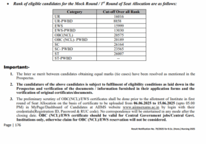 AIIMS B.Sc. Nursing 2025 की कट-ऑफ सूची विभिन्न श्रेणियों के अनुसार जारी की गई है। इस कट-ऑफ मएन उन अभ्यर्थियों की रैंक शामिल है जो मॉक राउंड या 1st Spherical Seat Allotment प्रक्रिया के लिए पात्र हैं। आप सभी को बता दे की अभ्यर्थियों को उनकी श्रेणी के अनुसार निर्धारित रैंक के आधार पर काउंसलिंग प्रक्रिया में शामिल होने का अवसर मिलेगा। नीचे के टेबल मएन हम सभी श्रेणियों की कट-ऑफ रैंक के बारे मएन विस्तार से बताए हुए है-