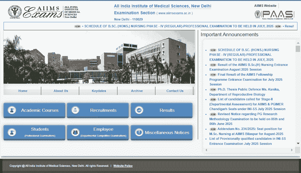 - AIIMS BSc Nursing Outcome 2025 को चेक व डाउनलो करने के लिए सबसे पहले आपको इसके Official Web site के होम – पेज पर आना होगा जो कि, इस प्रकार का होगा –