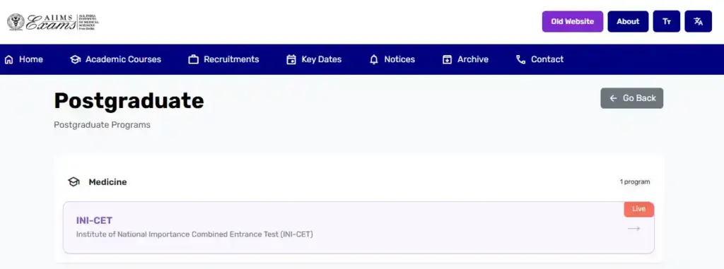 - नया पेज ओपन होगा। यहाँ आपको ‘Institute of Nationwide Significance Mixed Entrance Take a look at (INI-CET)’ दिख जाएगा, उस पर क्लिक करें।