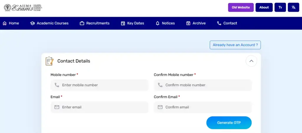 - सबसे पहले आपको आधिकारिक वेबसाइट aiimsexams.ac.in पर जाना होगा।
