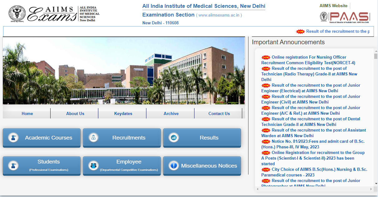 - AIIMS NORCET 9 Nursing Officer Recruitment 2025 मे ऑनलाइन आवेदन करने के लिए सबसे पहले आपको इसकी Official Web site के होम- पेज पर आना होगा जो कि, इस प्रकार का होगा –