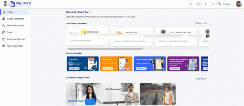 - इसके बाद आपको आपके डिजीलॉकर अकाउंट पर रि – डायरेक्ट किया जायेगा जो कि, इस प्रकार का होगा –