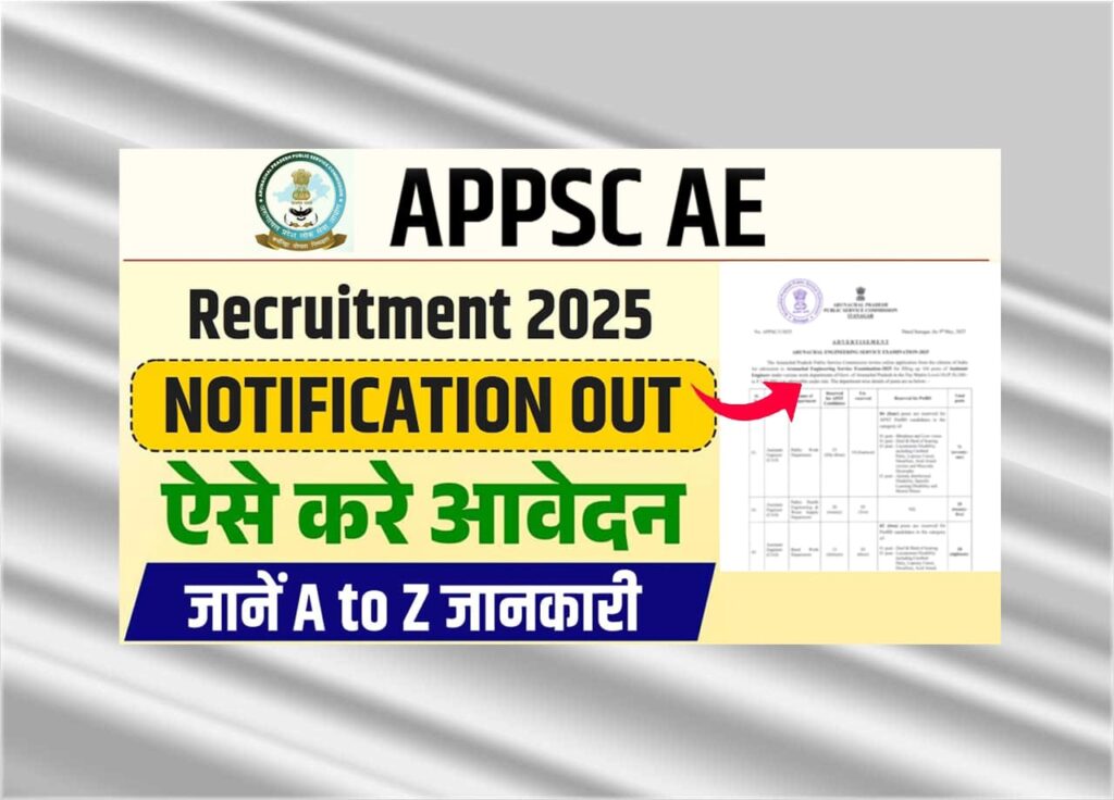 APPSC AE Recruitment 2025:- क्या आप सरकारी नौकरी की तलाश में हैं और आपके पास इंजीनियरिंग की डिग्री है? अगर हाँ, तो आपके लिए एक अच्छी खबर है। अरुणाचल प्रदेश लोक सेवा आयोग (APPSC) ने असिस्टेंट इंजीनियर के पदों के लिए भर्ती का आधिकारिक नोटिफ़िकेशन जारी किया है। यह मौका उन सभी युवाओं के लिए खास हो सकता है जिन्होंने सिविल, इलेक्ट्रिकल, मैकेनिकल या कंप्यूटर जैसी इंजीनियरिंग शाखाओं में डिग्री प्राप्त की है