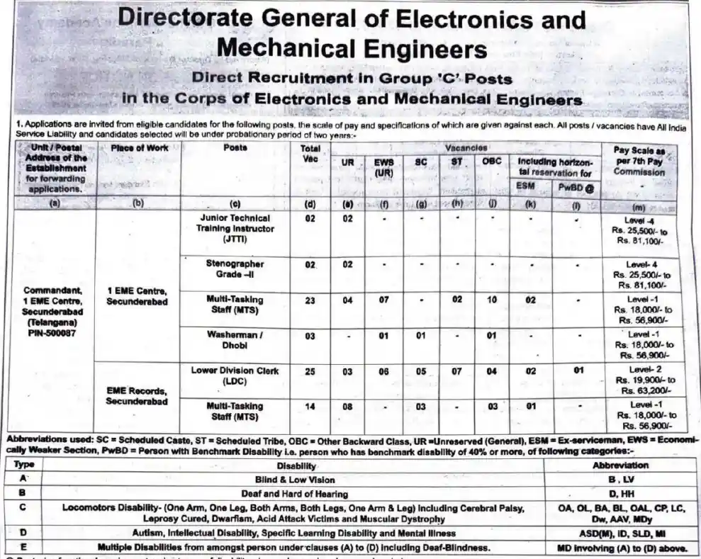 Military DG EME Secunderabad Group C Notification 2025: Particulars