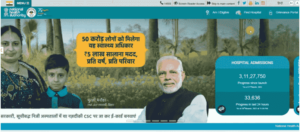 - Ayushman Card On-line आवेदन करने के लिए सबसे पहले आपको इसकी आधिकारीक वेबसाइट के होम – पेज पर आना होगा जो कि, इस प्रकार का होगा –