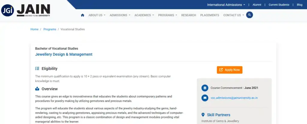 B.Voc. in Jewelry & Accent Design Course – Overview