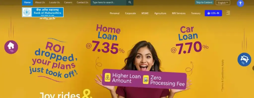 - सबसे पहले आपको बैंक की आधिकारिक वेबसाइट bankofmaharashtra.in पर जाना होगा।