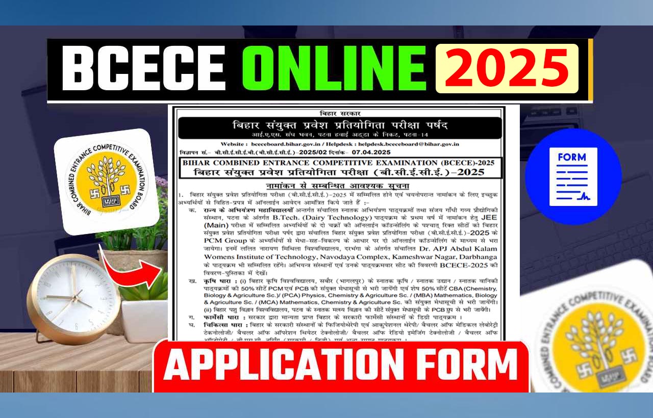 BCECE 2025 के लिए आप 09 अप्रैल, 2025 से लेकर आगामी 06 मई, 2025 तक ऑनलाइन अप्लाई कर सकते है।