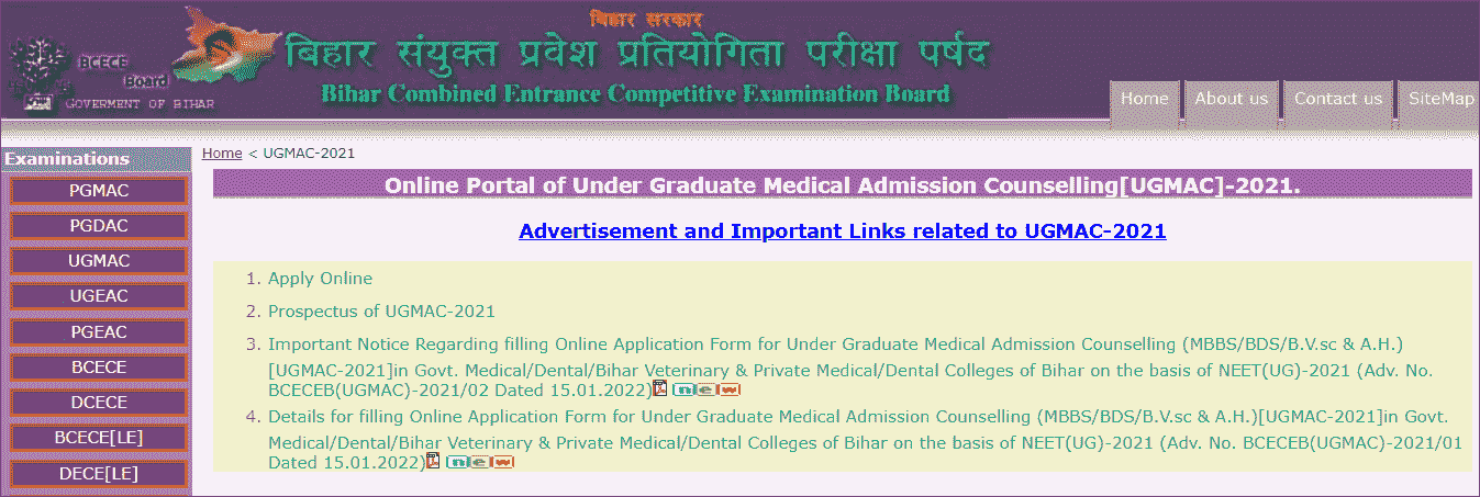 - BCECE Entrance Examination 2025 के लिए ऑनलाइन आवेदन करने के लिए सबसे पहले आप सभी विद्यार्थियो को BIHAR COMBINED ENTRANCE COMPETITIVE EXAMINATION (BCECE)-2025 की आधिकारीक वेबसाइट के होम – पेज पर आना होगा जो कि, इस प्रकार का होगा –