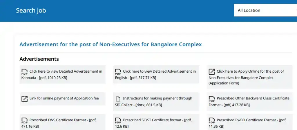 - इस पेज पर ‘ Click on right here to Apply On-line for the publish of Non-Executives for Bangalore Complicated (Utility Kind)’ पर क्लिक करें।