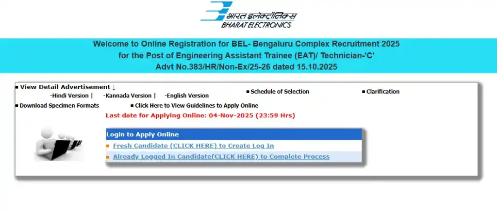 BEL Non-Govt भर्ती 2025 के लिए ऑनलाइन आवेदन प्रक्रिया 15 अक्टूबर 2025 से शुरू हो चुकी है।