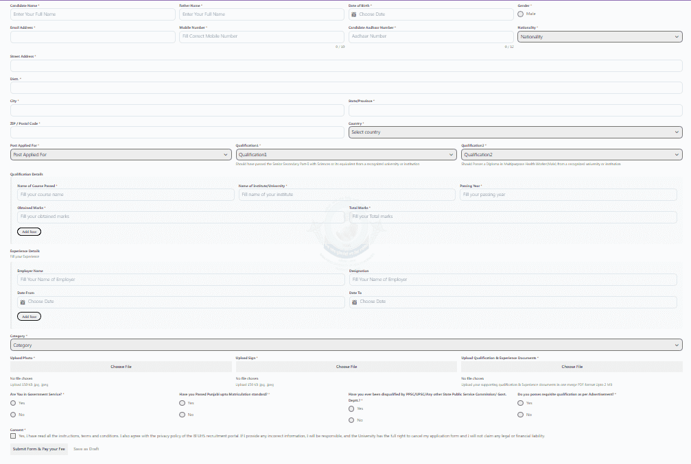 Direct Hyperlink to Apply On-line In BFUHS MPHW Male Recruitment 2025 |