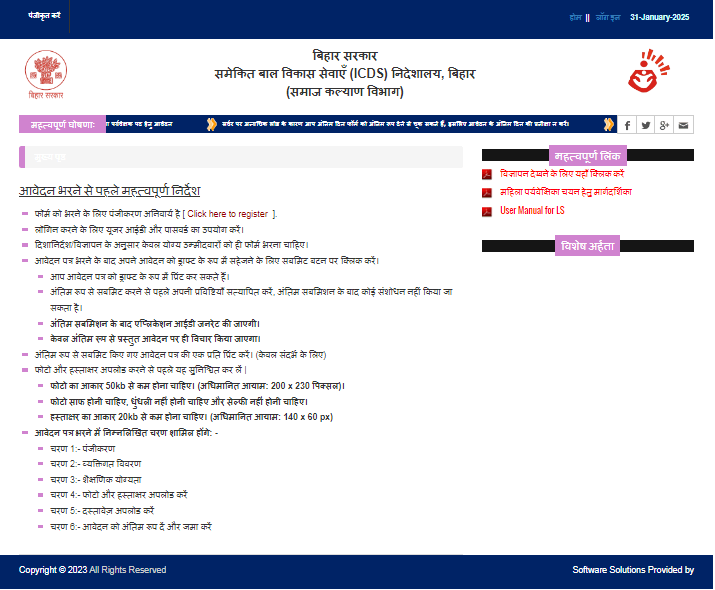 - Bihar Anganwadi Woman Supervisor Emptiness 2025 मे, ऑनलाइन अप्लाई करने के लिए सबसे पहले आपको इसकी आधिकारीक वेबसाइट के होम – पेज पर आना होगा जो कि, इस प्रकार का होगा –