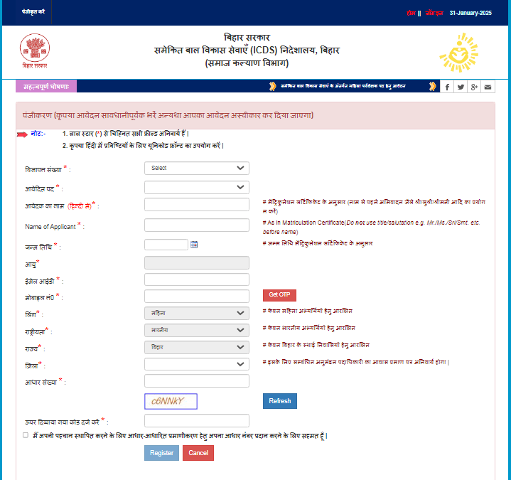 The best way to Apply On-line In Bihar Anganwadi Woman Supervisor Emptiness 2025?