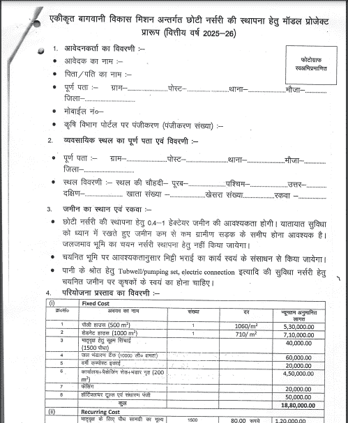 - Bihar Avocado Nursery Yojana 2025 मे ऑनलाइन अप्लाई करने से पहले आपको मॉडल प्रोजेक्ट फॉर्म को डाउनलोड करना होगा जिसके लिए इस PDF File को डाउनलोड करना होगा जो कि, इस प्रकार का होगा –
